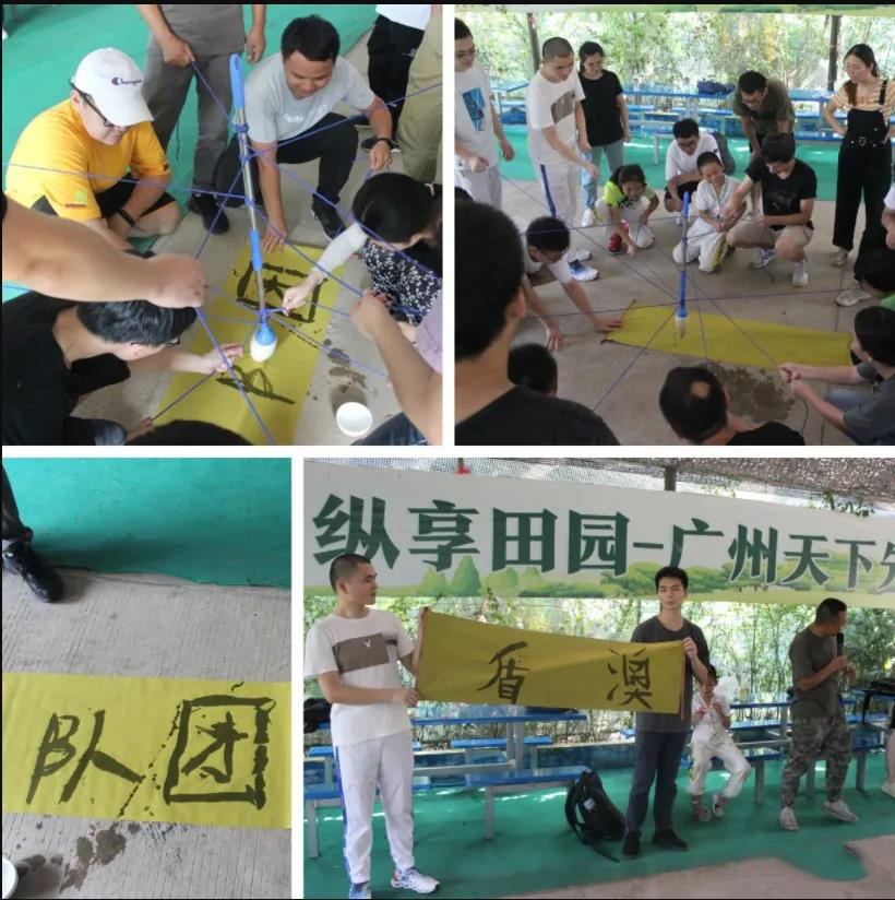 吃飽喝足后,拓展活動正式開始,組隊起隊名,喊口號,唱隊歌,排隊形,大家集思廣益,創意無限。